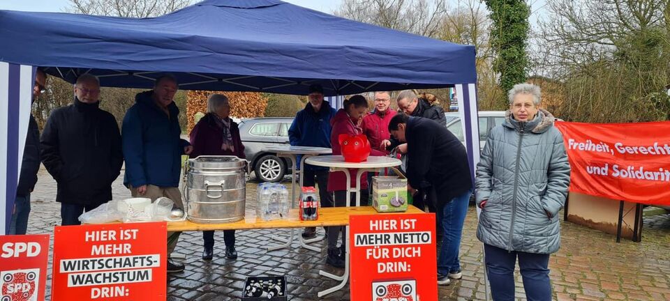 Genau, man macht einen Infostand mit Erbsensuppe in Roge. Gerade die letzten Tage haben gezeigt, wie super wichtig ein starkes Wahlergebnis der SPD bei der Bundestagswahl ist. Eine echte Brandmauer gegen Rechts wird es nur mit einer starken SPD geben.